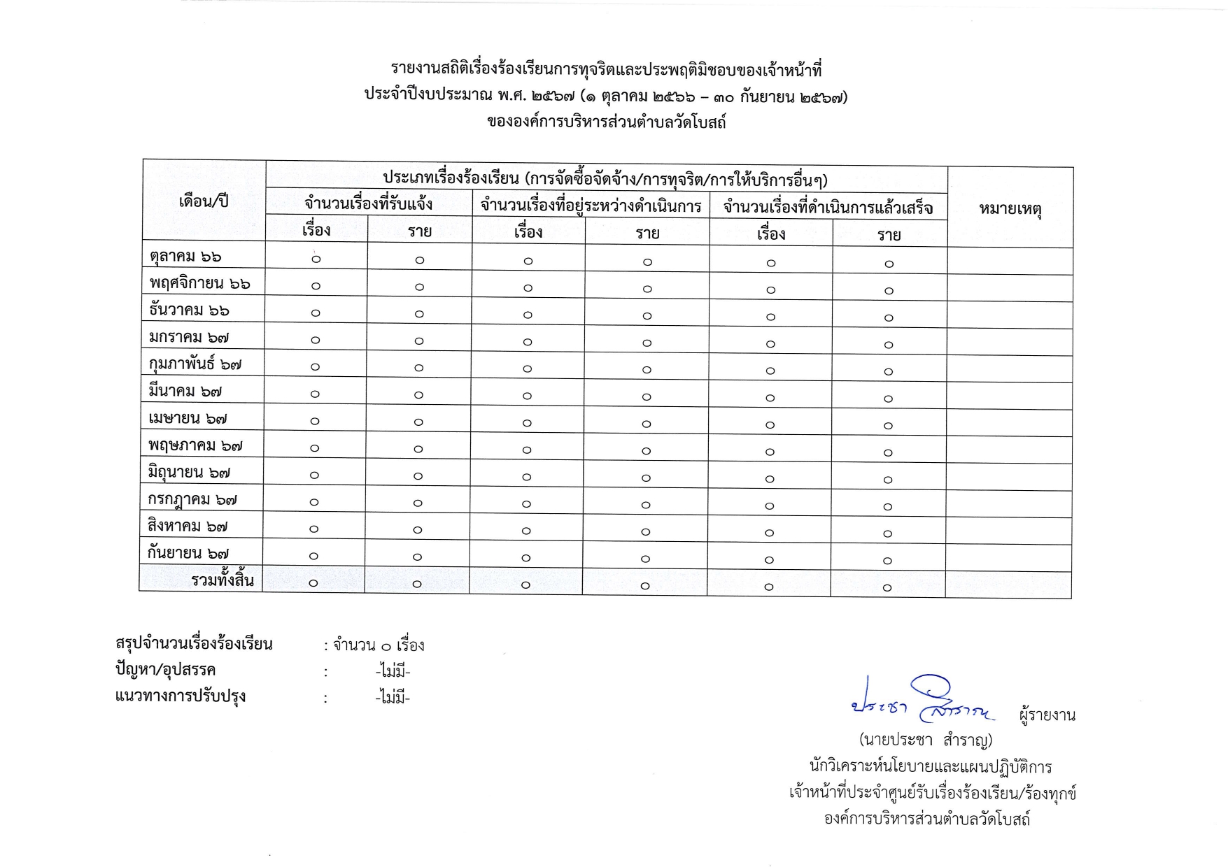 รายงานข้อมูลเชิงสถิติเรืองร้องเรียนการทุจริตและประพฤติมิชอบ ประจำปีงบประมาณ พ.ศ. 2567