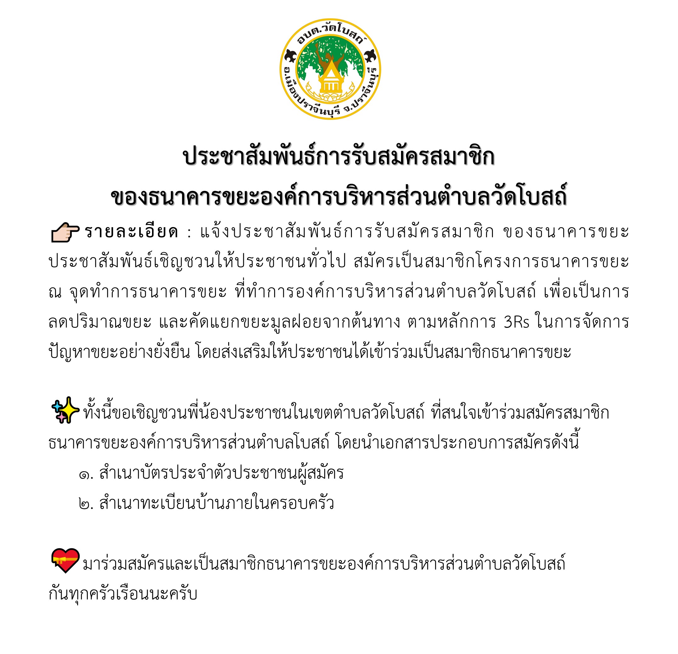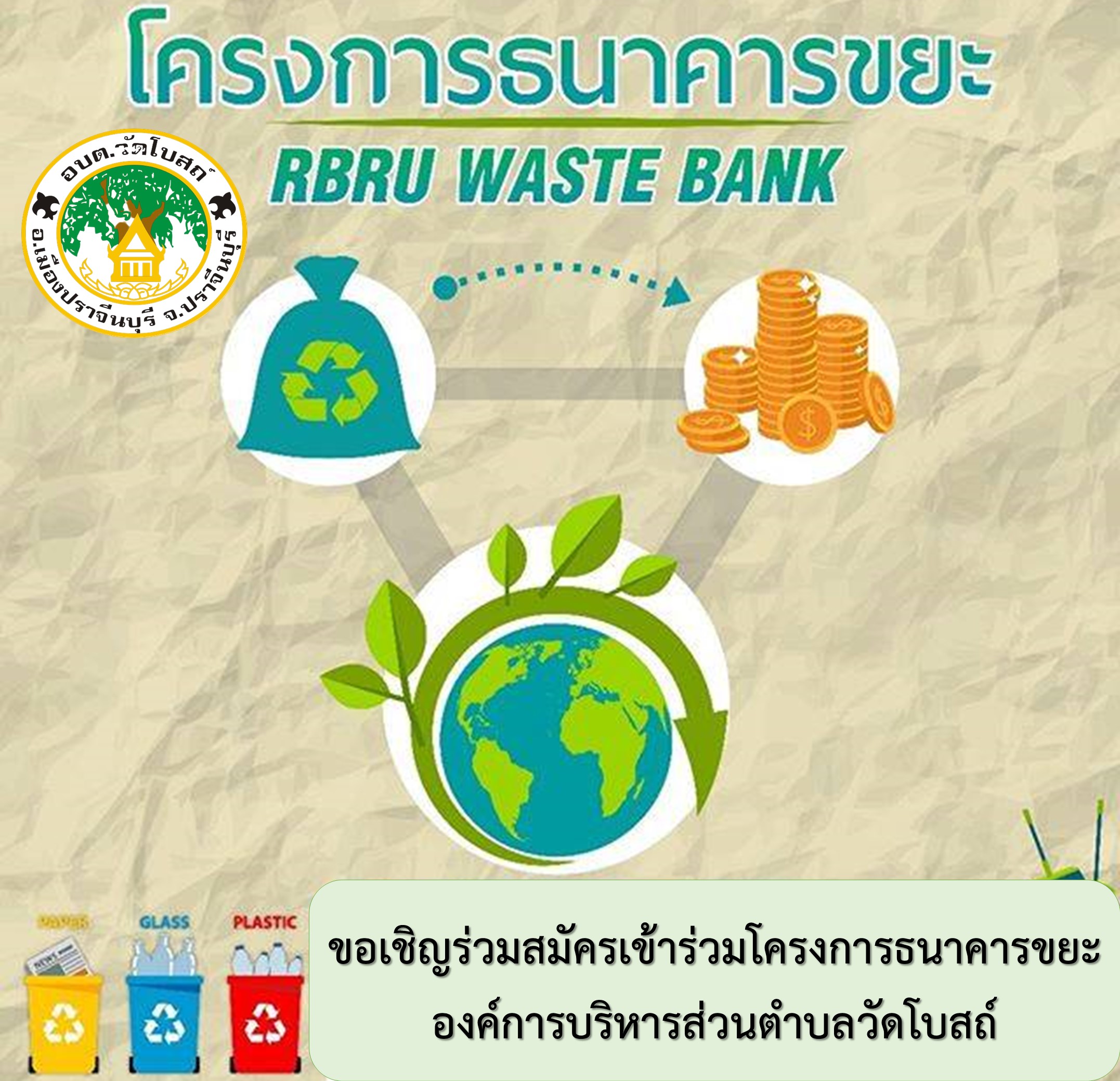 ประชาสัมพันธ์ เชิญร่วมสมัครเข้าร่วมกิจกรรมธนาคารขยะกับองค์การบริหารส่วนตำบลวัดโบสถ์
