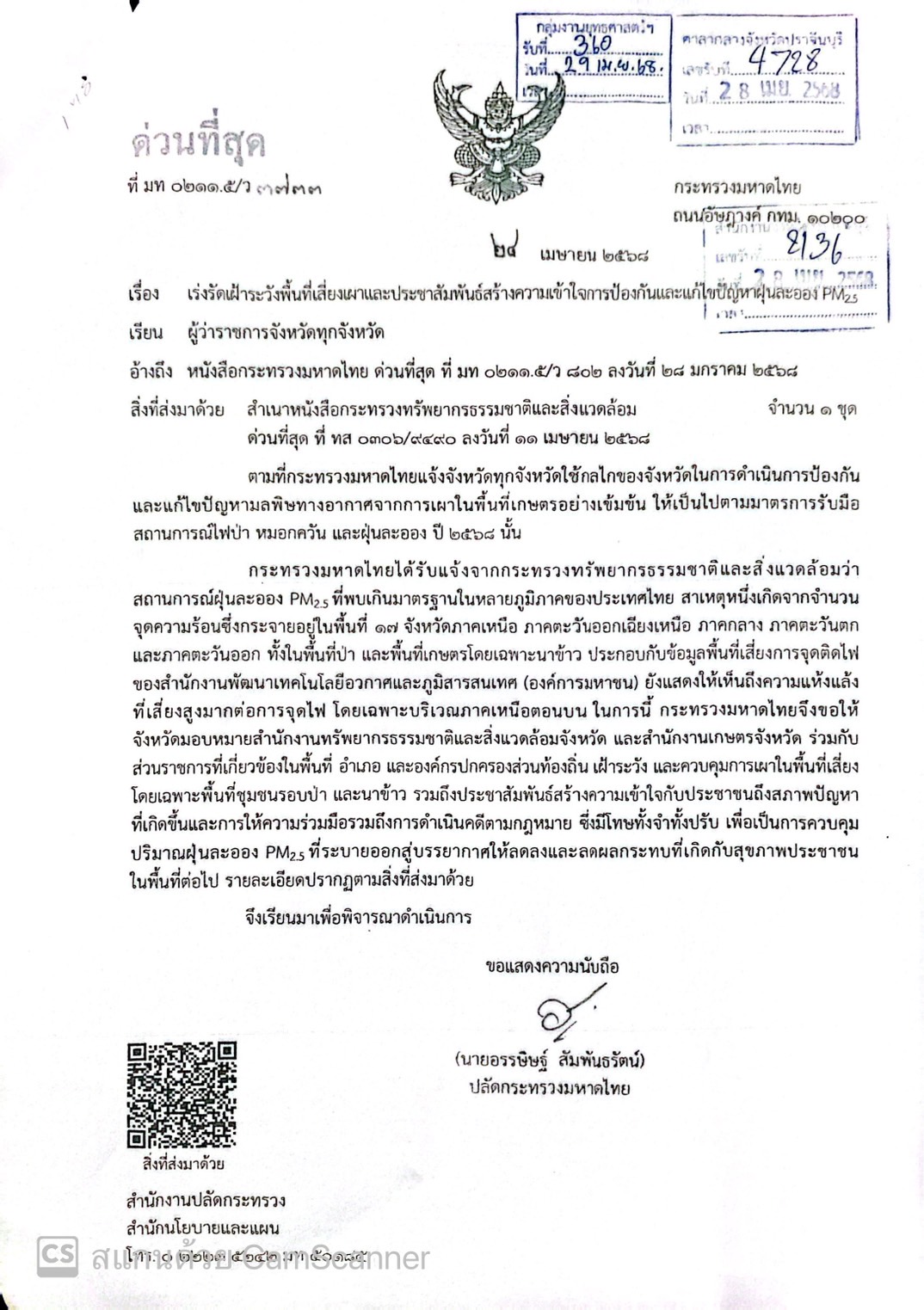 เร่งรัดเฝ้าระวังพื้นที่เสี่ยงเผาและประชาสัมพันธ์สร้างความเข้าใจการป้องกันและปัญหาฝุ่นละออง PM2.5