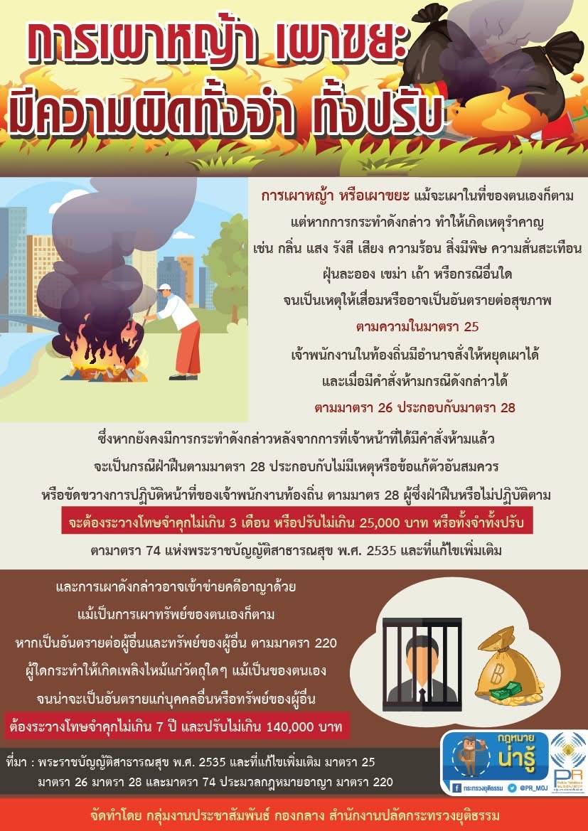 การเผาหญ้า เผาขยะ มีความผิดทั้งจำ ทั้งปรับ